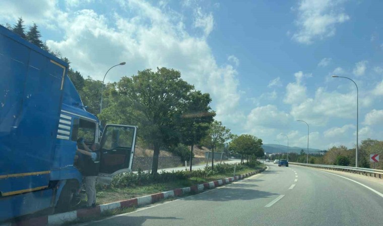 Bilecik’te seyir halinde aracın direksiyon başında fenalaşan sürücü orta refüje çıktı.