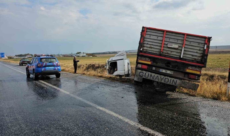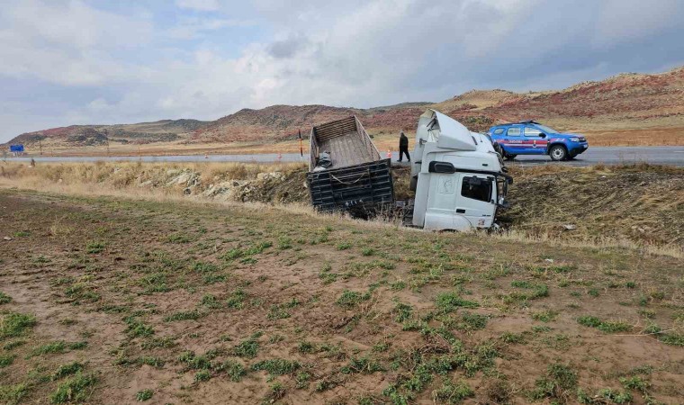 BİTLİS (İHA) – Bitlis’in Adilcevaz ilçesinde direksiyon hakimiyeti kaybedilen tır yoldan çıktı.