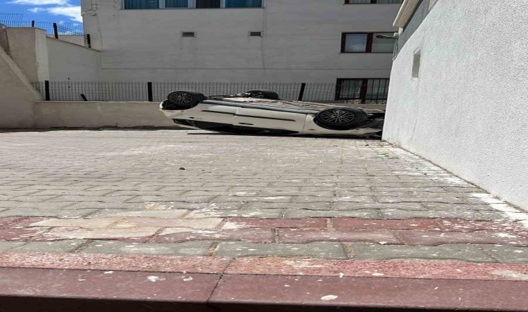Ankara’nın Mamak ilçesinde direksiyon hakimiyetini kaybeden sürücü, aracıyla birlikte metrelerce yükseklikte aşağıya uçtu.