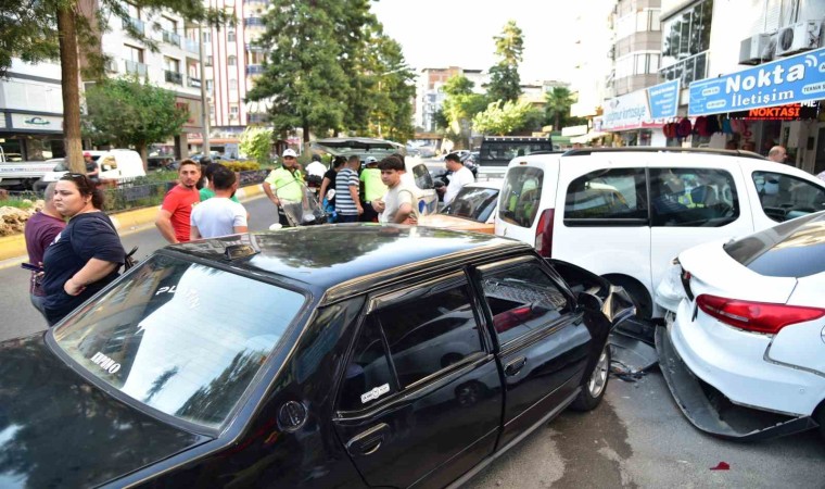 Aydın’ın Nazilli ilçesinde direksiyon hakimiyetini kaybeden sürücü park halindeki 4 araca çarptı. Toplam 5 aracın karıştığı kaza şans eseri maddi hasarla atlatıldı.