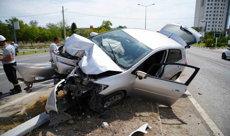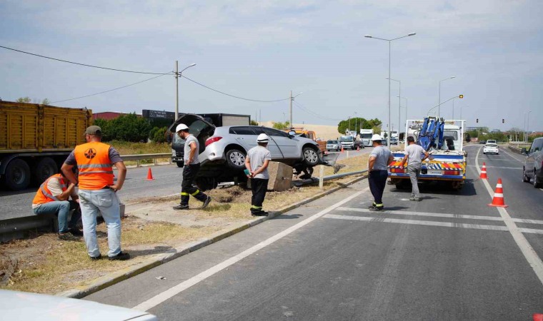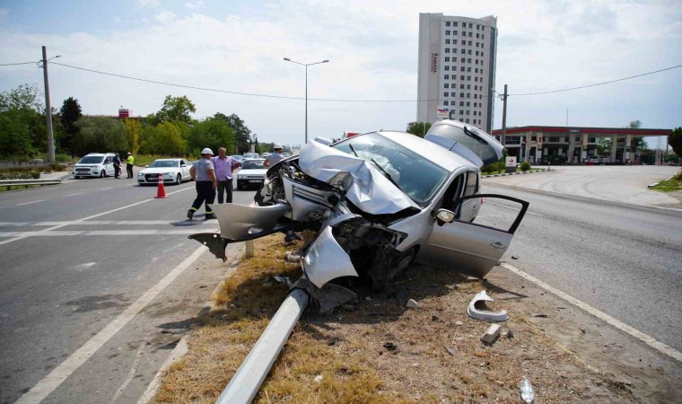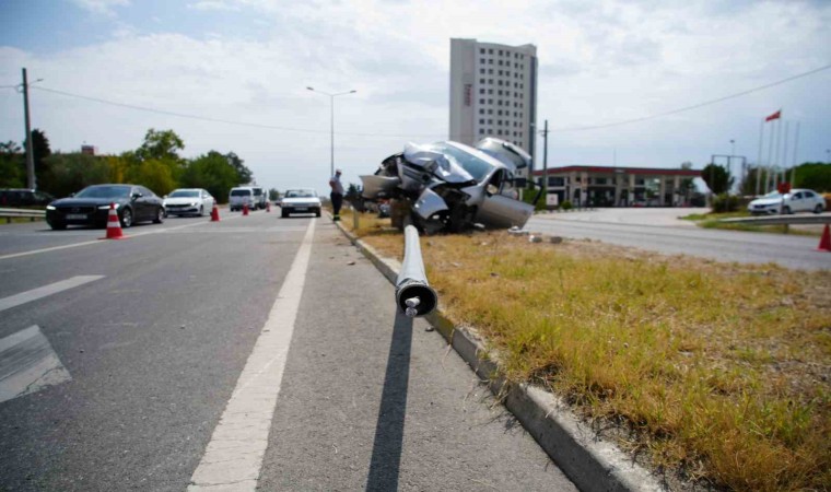 Edinilen bilgiye göre, kaza, Kırklareli-Edirne istikametinde meydana geldi. Mehmet E. idaresindeki 59 ZP 932 plakalı otomobil sürücüsü direksiyon kontrolünü kaybederek refüjdeki aydınlatma direğine çarptı. Meydana gelen kaza ise güvenlik kamerasına yansıdı.