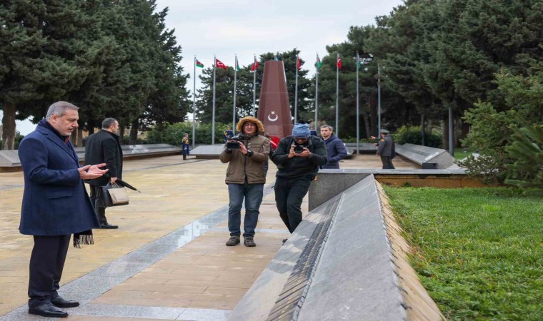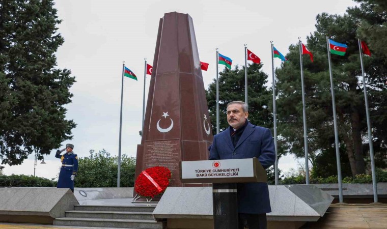 Dışişleri Bakanı Hakan Fidan resmi görüşmelerde bulunmak üzere geldiği Azerbaycan’da temaslarını sürdürüyor. Dışişleri Bakanı Fidan, Azerbaycan’ın merhum Cumhurbaşkanı Haydar Aliyev’in mezarını ve şehitlikleri ziyaret etti. Önce Haydar Aliyev’in mezarına çelenk bırakan Fidan, daha sonra Azerbaycan Şehitler Hıyabanı’na gelerek buradaki anıta çelenk koydu. Daha sonra Bakü Türk Şehitliği’ne geçen Fidan, buradaki anıta da çelenk bıraktı. Temsili şehit mezarlarına da karanfil bırakan Fidan, şehitlikteki anıt defterini imzaladı.