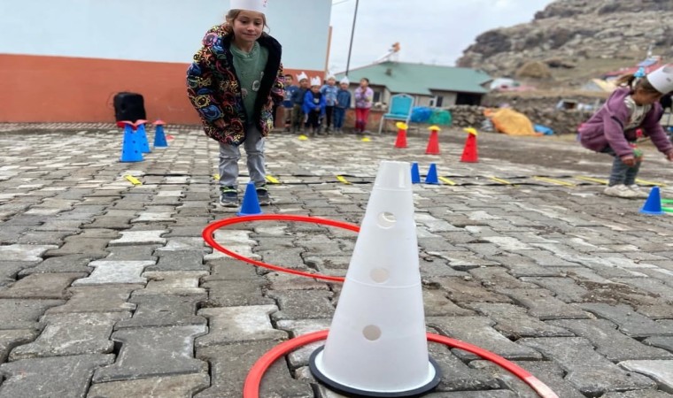 Okul bahçesinde Gençlik Merkezinde görevli gençlik liderleri ve gönüllüler, parkur oluşturarak öğrencilerle oyunlar oynadı.