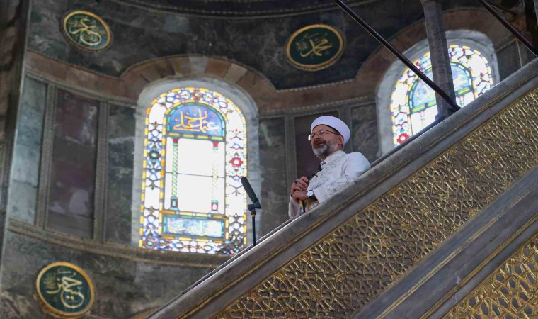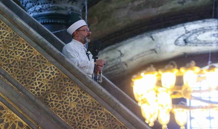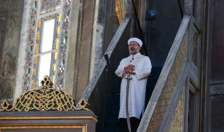 Diyanet İşleri Başkanı Prof.Dr. Ali Erbaş Cuma namazını Ayasofya Camii’nde kıldırdı. Erbaş, hutbeyi okumak için minbere elinde kılıç ile çıktı. İsrail’in Filistin’e yaptığı saldırıları konu alan “Rahmet ve Sekinet Müjdesi: İnşirah Suresi” başlıklı Cuma hutbesini okudu. Hutbesinde tüm insanlığa seslenen Erbaş, mazlumun yanında durma çağrısı yaptı.