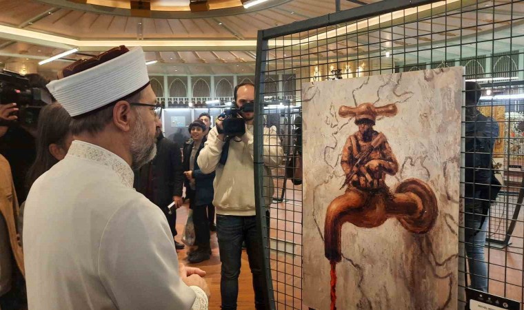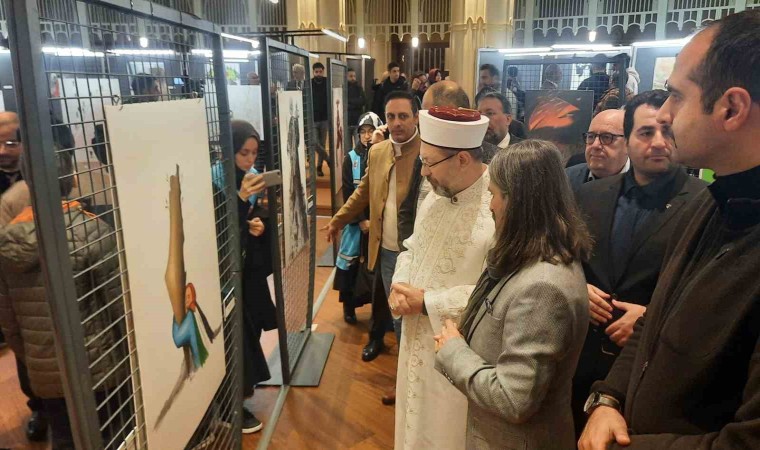 Diyanet İşleri Başkanı Ali Erbaş, “Uluslararası Çizgilerle Özgür Filistin” sergisinde yer alan eserlerde tarihin sanat alanındaki doğrulayıcısı olarak kabul edilebilir. Kudüs ve çevresi bugünlerde eşi görülmemiş bir katliama, vahşete maruz kalmaktadır. Bir asra yakın bir zamandır kanayan yaramız olan Filistin her geçen gün insanlığın vicdanını daha fazla parçalayan, kanatan acılara sahne olmaktadır. Bir millet Gazze’de Batı Şeria’da Kudüs’te ve Filistin’in diğer bütün şehir benzeri görülmemiş bir zulme maruz bırakılmakta. Bir millet topyekun yok edilmeye çalışılmakta, soykırıma uğratılmaktadır. Çoğunluğu çocuk ve kadın olan binlerce kardeşimiz İsrail saldırılarında hayatını kaybetti. İnsanların en temel ihtiyaçlarına ulaşmaları birçok şekilde engellendi. Hastaneler, okullar, ibadethaneler yerle bir edildi. Hala devam eden yoğun bombardımanda yaralanarak hastanelere sığınan yüzlerce insanın hastanelerin bombalanmasıyla hayatta kalma umutları da ellerinden alındı. Yeni doğmuş bebekler, küvözlerde can verdi. Bu elim olaylar yaşanırken İslam ülkeleri bir araya gelerek ortak bir tavırla yeterince tepki veremedi. İslam’a karşı her türlü eyleme hoşgörü ve özgürlükle bakan Batılı ülkeler ise yıllardır sistemli bir şekilde soykırıma maruz bırakılan Filistinlilerin asil direnişlerini, haklı özgürlük davalarını terörizm olarak gördü. Ancak İsrail’in Filistin halkına ait toprakları sistemli bir şekilde işgal ve Gazze’de uyguladığı soykırım tarihe kara bir leke olarak ve en büyük terör faaliyeti olarak geçti. Bunu tarih kaydetti. Burada sergilenen eserler pek tabii sadece bir etkinlikte yer almaları için üretilmediler. Sanatçılar Filistin’de yaşanan katliama ve katliam karşısında dünyanın umursamazlığına tepkilerini, çizgileriyle ifade ettiler. Bir insanlığın tükenişine duyulan acıyı dile getiren sergideki eserler doğrudan hayatın kendisine yaşanılan drama odaklanarak zalim bir devletin vahşetine tanıklık etmektedir. Bu eserler, bu sergi insanlık adına değerli olan ne varsa çiğneyip kötülükleri savunan bir ahlaki kirlenmişliği, bir insani yoksunluğu sanatsal öğelerle ortaya koymaktadır" ifadelerini kullandı.