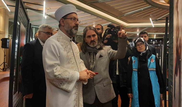 Diyanet İşleri Başkanı Ali Erbaş konuşmasının ardından sergiyi gezerek eserler hakkında bilgi aldı.