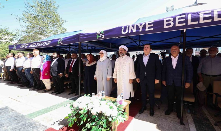 Diyanet İşleri Başkanı Prof. Dr. Ali Erbaş, Ordu’nun Ünye ilçesinde, ilçe müftülüğü hizmet binası, cami, gençlik merkezi ve Kur’an kurslarının da aralarında yer aldığı yapımı tamamlanan 17 eserin toplu açılış törenine katıldı. Başkan Erbaş, 4-6 yaş Kur’an kurslarında Diyanet İşleri Başkanlığına bağlı din görevlilerinin emekleri olduğuna işaret ederek, “Kur’an kurslarımız, 4, 5, 6 yaşındaki çocuklarımızı Rabbimizin rızasına uygun olarak yetiştirmenin mekanlarıdır. Ne öğretiyoruz biz çocuklarımıza orada? Önce sevgiyi öğretiyoruz, sevgi olmazsa hiçbir şey olmaz. Rabbini, Peygamberini, Kitabını, annesini, babasını, büyüklerini, vatanını, ezanını, bayrağını sevecek. Bu muhteşem ve mübarek değerleri sevmek, onları seven nesilleri yetiştirmek lazım. Sonra saygıyı, sadakati, dürüstlüğü, doğruluğu öğretiyoruz” diye konuştu.