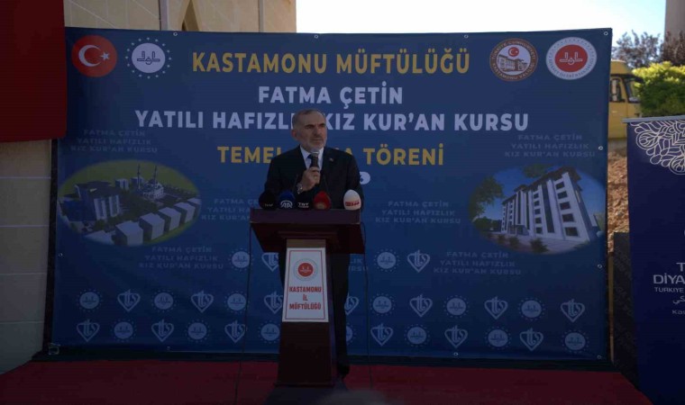 Temelini attıkları arsanın hazineye ait olduğunu söyleyen Kastamonu İl Müftüsü Bekir Derin ise, “5 bin 748 metrekare yüzölçümüne sahiptir. 2017 yılında dini tesis alanı olarak Diyanet İşleri Başkanlığımıza tahsisi yapılmıştır. Söz konusu arsa üzerine ilimizin kıymetli iş adamlarından Recep Dinler ve Bülent Çetin Beyler tarafından 2017 yılında bir külliye mantığıyla proje çalışmalarına başlanılmış, 2021 yılında merhum Hacı Mustafa Dinler adına 900 cemaat kapasiteli camimiz inşa edilerek ibadete açılmıştır. Şimdi ise 640 metrekare üzerine 7 kat 120 yatak kapasiteli ve 4 bin 600 metrekare kapalı alan üzerine inşa edilecek ve yaklaşık 70 milyon liraya mal olacak içerisinde 4-6 yaş Kur’an Kursu sınıflarımızın da bulunduğu Fatma Çetin Yatılı Hafızlık Kız Kur’an Kursumuzun temelini atıyoruz” dedi.