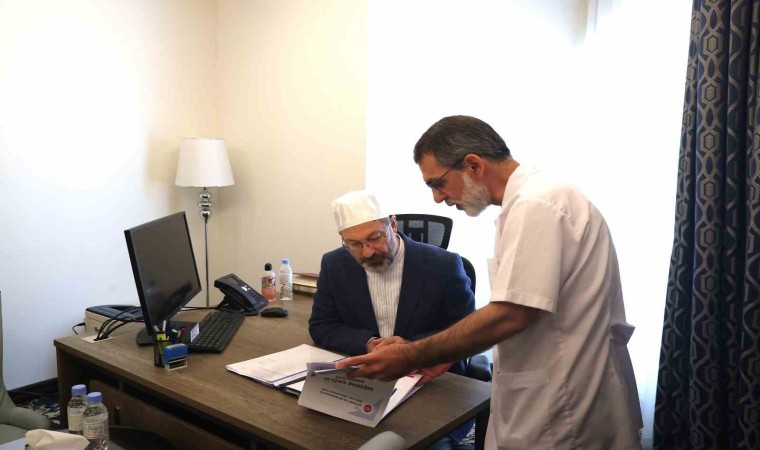 Diyanet İşleri Başkanı Erbaş ayrıca, Türk hacı adaylarıyla bir araya gelerek bir süre sohbet etti.