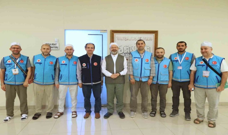 Başkan Erbaş, Mekke Koordinasyon ve İskan Ekip Başkanı Mustafa Asiltürk, Fetva ve İrşat Ekip Başkanı Prof. Dr. Abdurrahman Haçkalı ile Denetim, Gözetim ve Rehberlik Ekip Başkanı Dr. Dursun Aygün’den çalışmalar hakkında bilgi aldı.