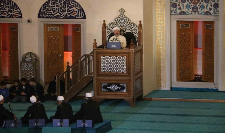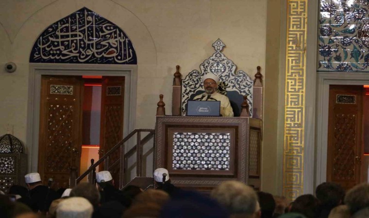 Namazın önemine de değinen Erbaş, "Efendimizin şu hadisini bu gece daha iyi anlamaya çalışalım, ’Bir kötülük gördüğünüz zaman o kötülüğü ellerinizle düzeltiniz. Elinizle gücünüz yetmezse, dilinizle düzeltiniz. Dilinizle gücünüz yetmezse kalbinizle.’ Ey Müslümanlar işte onun için Kudüs’ün özgürlüğü için Filistin’in özgürlüğü için Mescid-i Aksa’nın özgürlüğü için bütün Müslümanlar elimizden geleni yapmalıyız. Dilimizden geleni yapmalıyız. Ve kalbimizle mazlumun, mağdurun yanında olmalıyız. Zalimlerin işgalcilerin karşısında olmalıyız. Miracın Müslümanlara en büyük hediyesi nedir diye birisi size sorsa. Namazdır olacak. Namaz müminlerin miracıdır. Allah Resulü Efendimizin miraçtan dönüşte getirmiş olduğu bir ibadettir namaz. Peygamber efendimiz buyuruyor ki ’Namaz dinin direğidir.’ Beş vakit namazdan bahsediyor peygamber efendimiz. Son nefesini vermeden önce ’namaz, namaz, namaz. Namaz gözümün nurudur’ dedi. Namazla ilgili bu gece biraz tefekkür edelim. Eğer namazla ilgili eksikliklerimiz varsa onları gidermeye bu gece söz verelim. Namaz konusundaki yaşantımızı müzakere ederek, değerlendirerek geçirelim. Gençlerimizi kucaklayalım. Onlara tatlı dille güler yüzle ibadetli bir hayatın İslam’da ne kadar önemli olduğunu anlatalım. İbadetsiz bir hayatın boş bir hayat olduğunu onlara anlatalım. Allah cümlemizi namazsızlıktan, ibadetsizlikten muhafaza eylesin. Kardeşlerimizi, çocuklarımızı, gençlerimizi alnı secdeli olanlardan eylesin. Miracın hediyesi olan namazı ihmal etmeyenlerden eylesin" diye konuştu.
