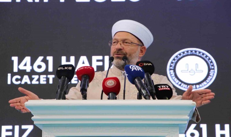 Konuşmasında “Biz oryantalist gibi bir dinler tarihçisi değiliz” diyen Erbaş, “Ben dinler tarihi hocasıyım. Kur’an-ı Kerim’de Yahudilikten, Hristiyanlıktan, diğer inançlardan, Tevrat’tan, İncil’den, Hazreti Meryem’den, Hazreti Musa’dan, Hazreti İsa’dan, 25 peygamberden bahseden yüzlerce ayet var. Hiç dinler tarihi Kur’an’dan bağımsız yapılabilir mi? Biz oryantalist gibi bir dinler tarihçisi değiliz. Felsefe hocalarımız da Kur’an’dan bağımsız bir felsefe yapamaz. Çünkü felsefenin bizim medeniyetimizdeki adı hikmettir. 1920’li yıllara kadar İstanbul Darülfünunun Üniversitesi’nin ana bilim dallarından birisinin adı ’hikmet’ idi. Daha sonra hikmet kaldırıldı, yerine felsefe konuldu. İlmü’n Nefs kaldırıldı, psikoloji konuldu. Yani kavramlarımıza sahip çıkalım. Kendi kavramlarımızla konuşalım. Bizim Türkçemiz yeryüzünde en zengin dillerden birisidir. Arapça, Farsça kelimelerle zenginleşmiş muhteşem bir hal almıştır bizim lisanımız. Bunun için sizden bir diğer dileğim çok okumanız. Hafızlığınızı başka kitaplar okuyarak daha zengin hale getirmeniz. Her zaman söylüyoruz ya, bütün kitaplar Allah’ın kitabını daha iyi anlamamız için okunur. Eğer astronomi, jeoloji, yer bilimleri, gök bilimleri bunlar ile ilgili okuduğunuz kitapları, makaleleri Kur’an-ı Kerim’i daha iyi anlayayım diye okursanız sizler ibadet etmiş olursunuz. Kur’an anlamak ve yaşamak için ezberlenir. Kur’an kurslarımıza koyduğumuz Kur’an’ı anlamak programını da bizim daha fazla teşvik etmemiz, daha fazla emek sarf etmemiz gerekiyor. Anlamadığımız takdirde o zaman Kur’an-ı Kerim’den çok fazla istifade edemeyiz. ‘Beşerin derdine derman olur ancak Kur’an, onsuz artık canavardan da beterdir insan’ diyor Mehmet Akif Ersoy. Biz Kur’an ile beşerin derdine derman olacağız. Beşer bizden bunu bekliyor. Yeryüzündeki cehalet Kur’an ile aydınlanmayı bekliyor. Bizler aydınlatacağız Kur’an ile, peygamber varisleri. İşte bizler peygamberimizin varisleri olarak onun bıraktığı yerden bu davayı devam ettireceğiz. Efendimiz Arafat’ta veda hutbesinde yer alan şu asliyeti bizlere yaptı. ’Size iki şeyi emanet bıraktım’ dedi. ’Size iki şey bırakıyorum, onlara sımsıkı sarıldığınız sürece yolunuzu şaşırmayacaksınız: Allah’ın kitabı ve peygamberinin sünneti’ dedi. İşte bizler Allah’ın kitabına sahip çıkacağız, resulünün sünnetine sahip çıkacağız. Onu öğretmek, yaşamak yolunda ömrümüzü geçireceğiz. Son nefesimize kadar bunun için çalışacağız. Hafızlığınız mübarek olsun. Sizleri, hocalarınızı, ailelerini tebrik ediyorum” diye konuştu.