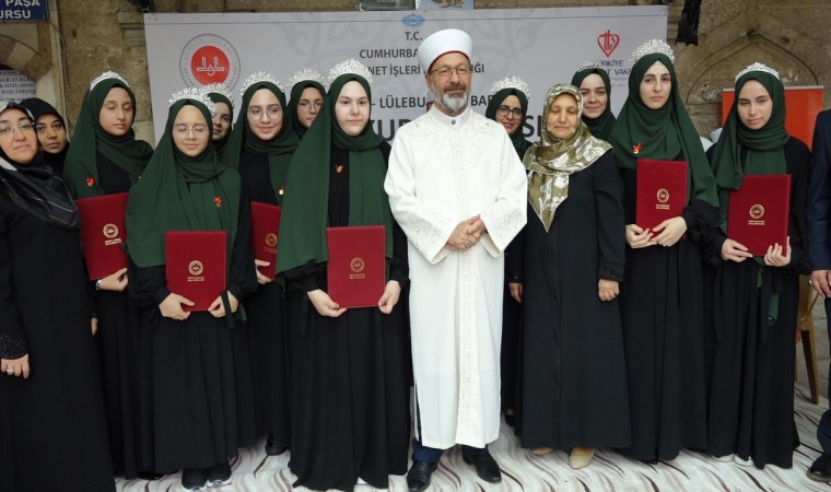 Konuşmaların ardından Erbaş, hafız olan 6’sı erkek 17 kişiyi tebrik ederek hediyelerini takdim etti.