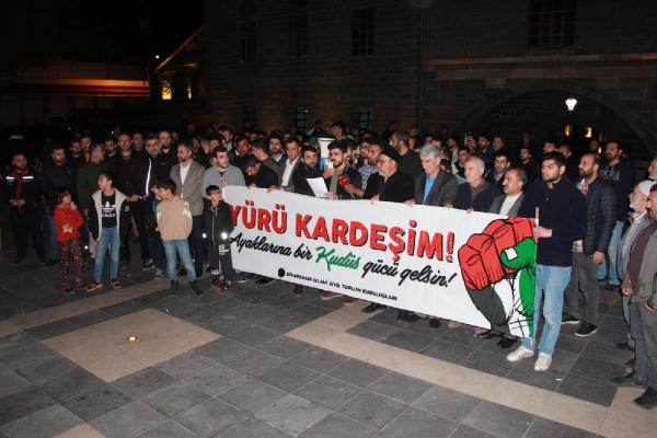 Diyarbakır’ın Sur ilçesinde bulunan Tarihi Ulu Camide kılınan teravih namazının ardından basın açıklaması düzenlendi. Toplanan grup adına konuşan Atilla Bozyiğit, Mescid-i Aksa'nın ramazan ayında İsrail tehlikesi altında olduğunu ifade ederek, "Kudüs’e saldırıyorlar, Müslümanları öldürüyorlar, kadın ve çocukları yaralıyorlar. Kudüs’ün sokaklarında ve Mescid-i Aksa’da kurşun sıkıp bomba atıyorlar. İsrail’in Kudüs’ün Yahudileştirilmesi kapsamında Mescid-i Aksa’ya saldırması tamamen yasa dışıdır. İsrail sistematik şekilde Filistinlileri bölgeden uzaklaştırarak, burada bir Yahudi mabedi inşa etmek istemektedir. Sistematik saldırılar İsrail’in geçmiş politikalarının bir parçasıdır. Bu felakete son verilmesi gerekmektedir. İsrail, Mescid-i Aksa’ya baskın yapmasının ardından orada ibadet halinde bulunan Filistinli kadınlara yönelik büyük bir saldırı girişiminde bulundu. Bu hunharca saldırı, İsrail’in bölgeye uygulamış olduğu sistematik saldırıların bir neticesidir ve Filistinli her kesimin hedef alındığının göstergesidir” dedi.