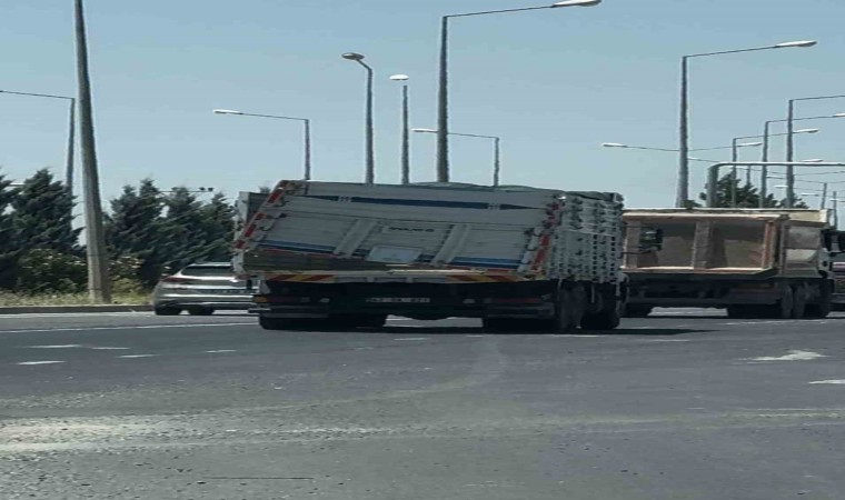 Yenişehir ilçesi Elazığ Bulvarı’nda sürücüsü öğrenilemeyen 47 DA 821 plakalı kamyon, arızalı damper kapağıyla seyir halinde tehlikeye davetiye çıkardı.