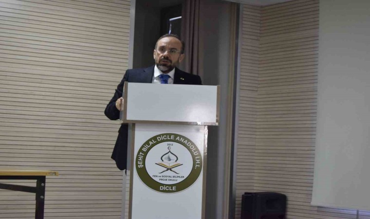 Dicle ilçesini ziyaret eden Diyarbakır İl Müftüsü Celal Büyük, Şehit Bilal Dicle Anadolu İmam Hatip Lisesi Fen ve Sosyal Bilimler Proje Okulunda ’Gençler Soruyor Müftümüz Cevaplıyor’ buluşmasına katıldı.