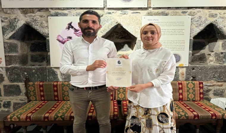 Gizligöl, Karaman’a müzeyi gezdikten sonra 90 bininci ziyaretçi sertifikası ile müzenin logo baskılı parasını da takdim etti.