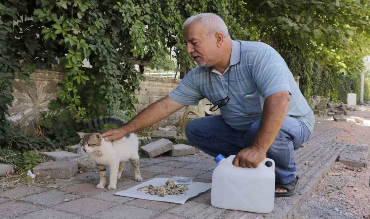 Hayvan sevgisini annesinde aldığını belirten Yılmaz Acu, 48 derecelik hava sıcaklığında sokak hayvanlarını unutmayarak günde 3- 4 bin sokak hayvanına baktığını söyledi.