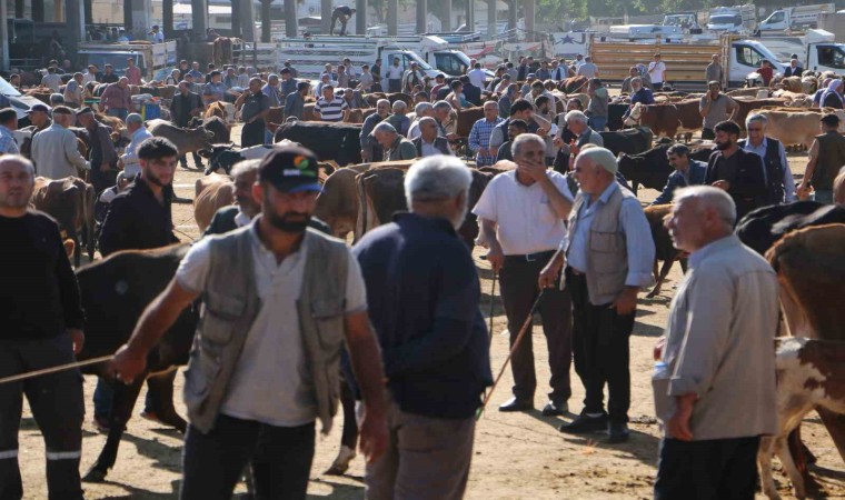 Kurban Bayramı öncesi Diyarbakır Canlı Hayvan Borsasında hareketli saatler yaşanırken, pazar, kurbanlık almaya gelenlerle dolup taştı. Kentte 115 bin hayvan kurbanlık için hazır halde bulunuyor.