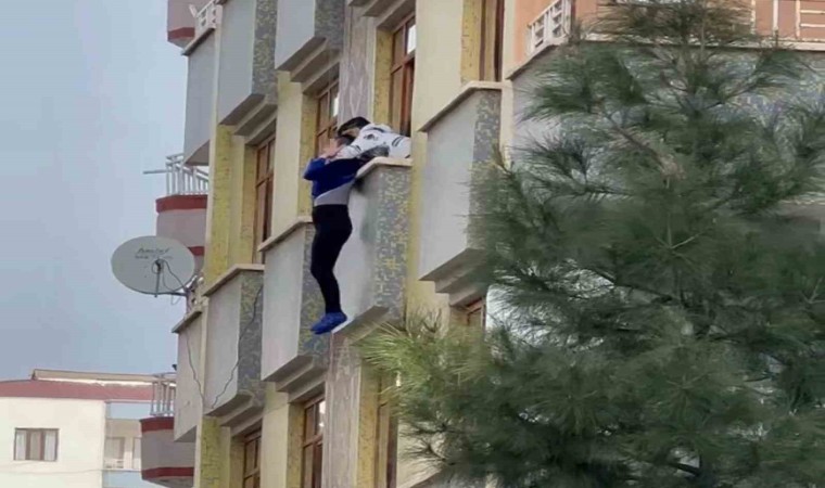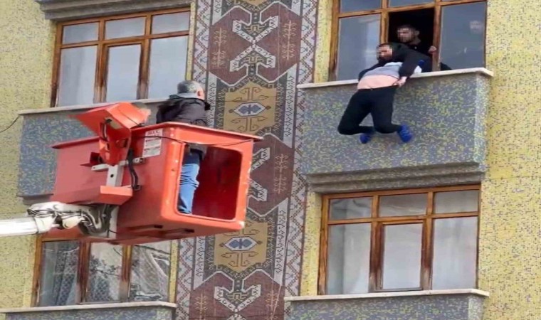 Diyarbakır’ın merkez Kayapınar ilçesinde binanın 3’üncü katında pencereden kendini bırakan kadın, evin içindekilerin tutması ve güvenlik kamerası onarım aracı yardımıyla kurtarıldı.