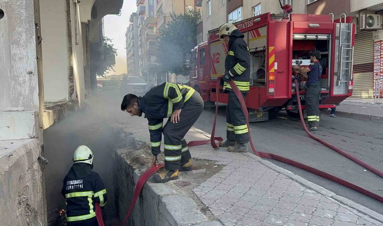Diyarbakırda ağır hasarlı 7 katlı binanın bodrum katında yangın