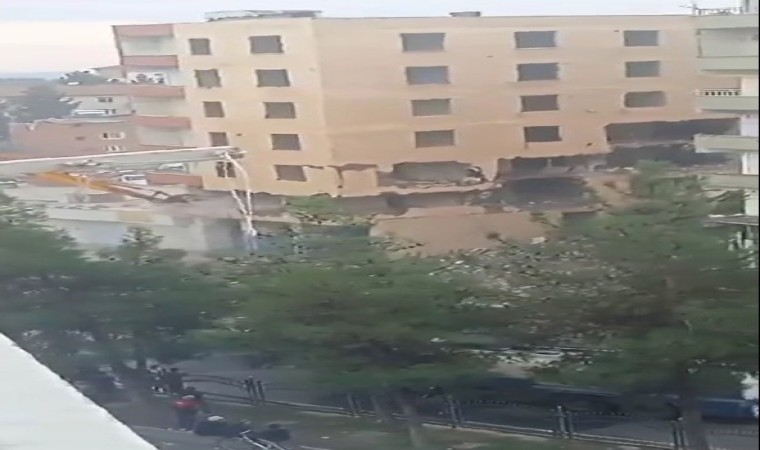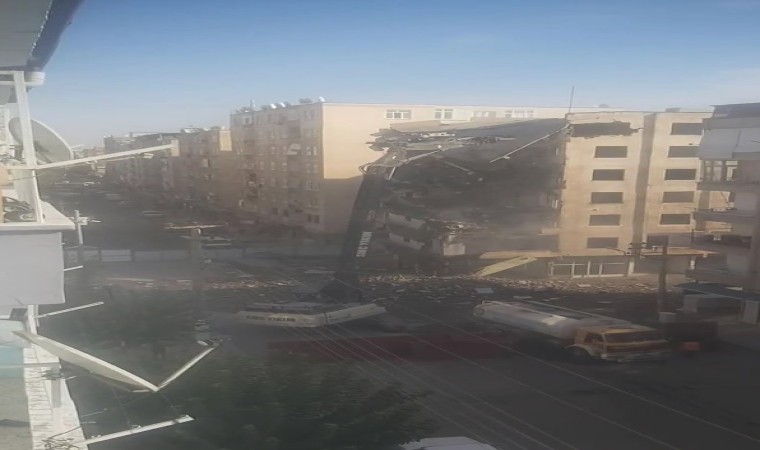 Diyarbakır’ın Bağlar ilçesinde, 6 Şubat Kahramanmaraş merkezli depremlerde ağır hasar alan 6 katlı bir bina, yıkımı yapılırken çöktü.