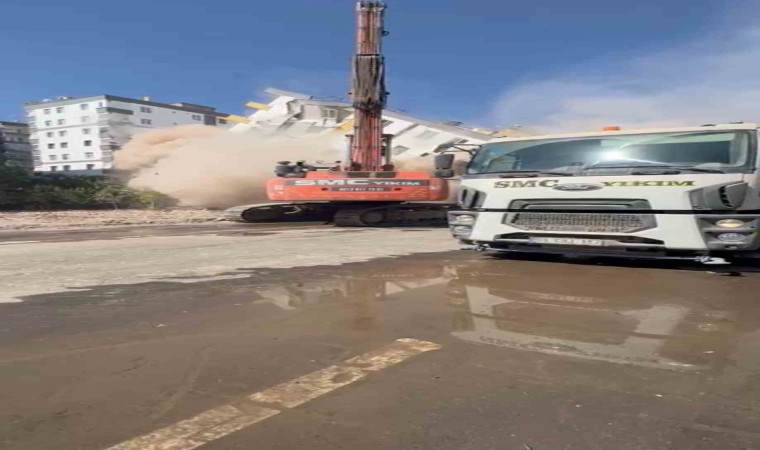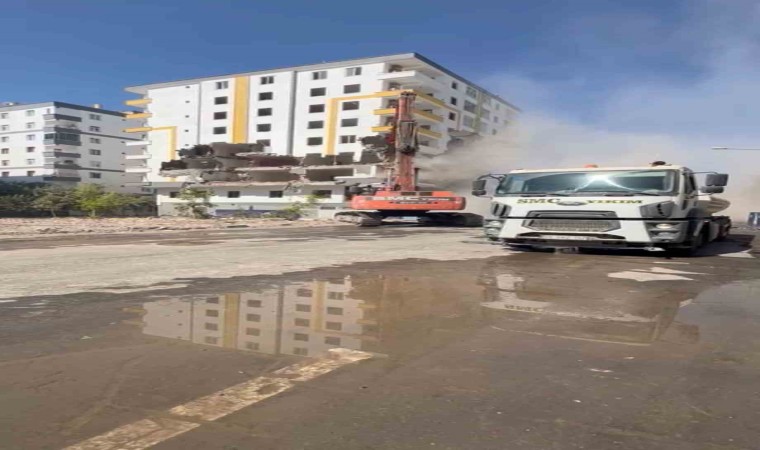 Diyarbakır’da Kahramanmaraş merkezli depremlerde ağır hasar gören 9 katlı apartman, yıkım çalışmaları sırasında aniden çöktü.
