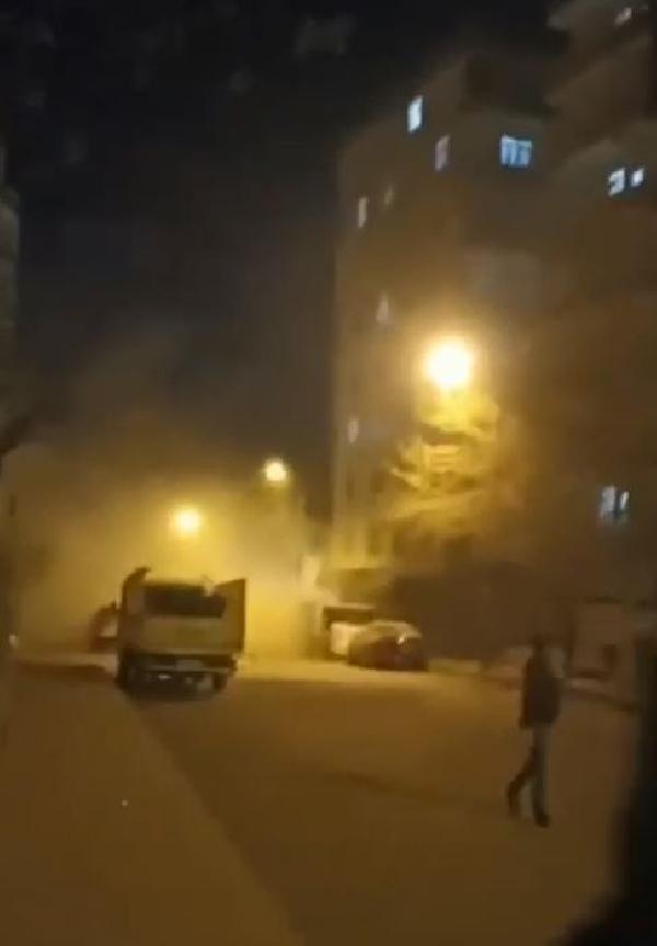 Diyarbakır'da ağır hasarlı binanın bir kısmının çöküş anı kamerada