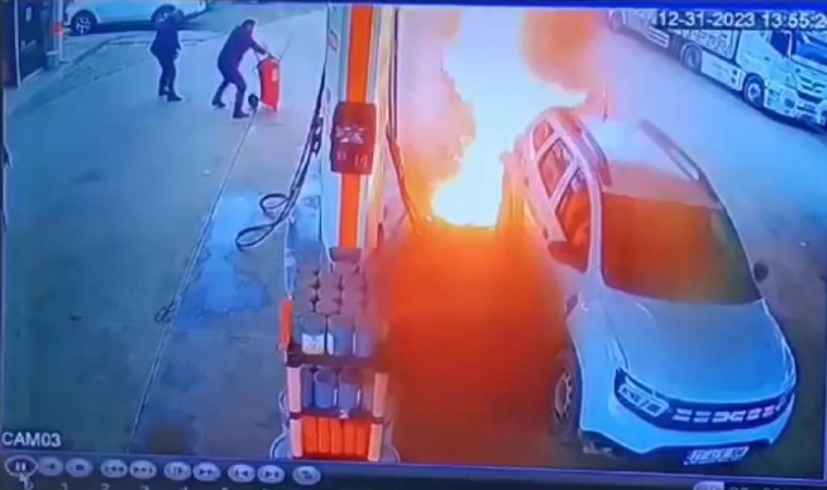 Alınan bilgilere göre, ilçenin Ulutürk Mahallesi’ndeki bir akaryakıt istasyonunda bir otomobil yakıt aldığı sırada deposu yanmaya başlamıştı. Bir anda yükselen alevler istasyona sıçramıştı. Yangın akaryakıt istasyonu çalışanlarının müdahalesi ile kısa sürede söndürülürken, yaşanan korku dolu anlar istasyonun güvenlik kamerasına yansıdı.