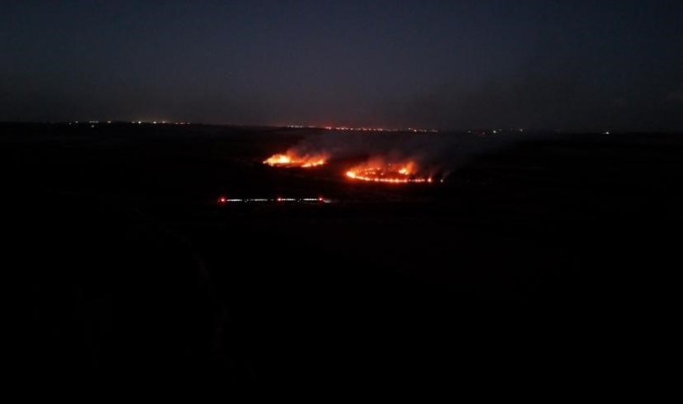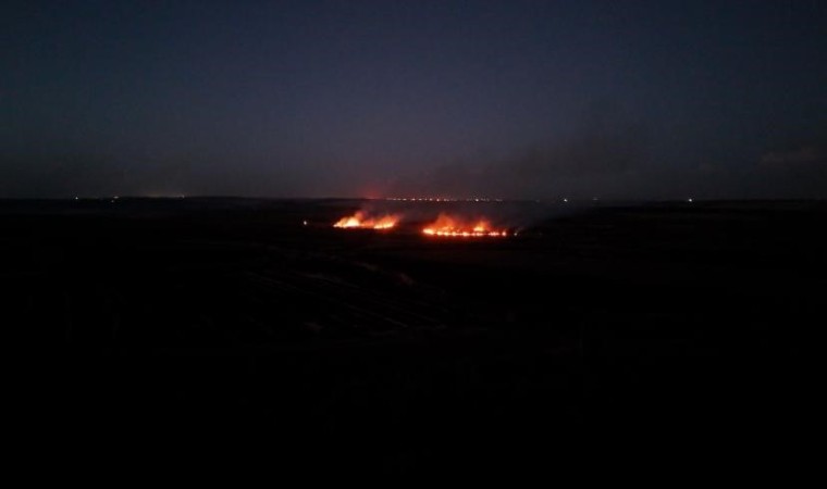 Diyarbakır’ın Çınar ilçesinde anız yangını havadan görüntülendi.