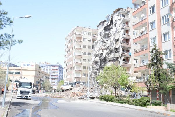Burak EMEK- Gıyasettin TETİK/DİYARBAKIR, (DHA)- DİYARBAKIR’da depremde ağır hasar görünce boşaltılan önceki gün de bir kısmı çöken 7 katlı apartmanın yıkımına başlandı.