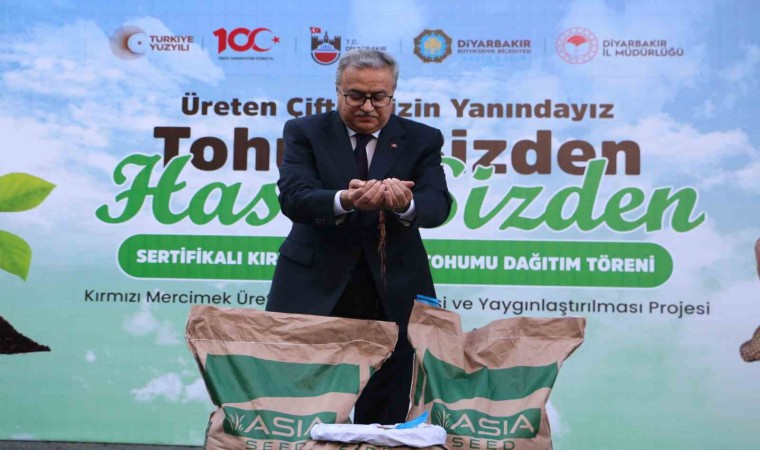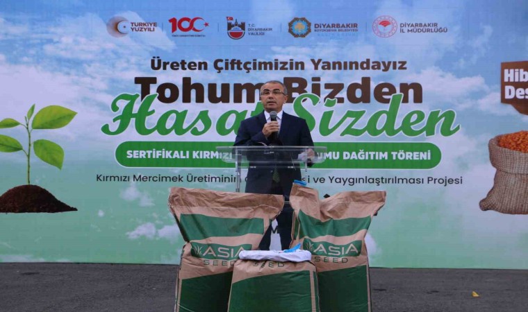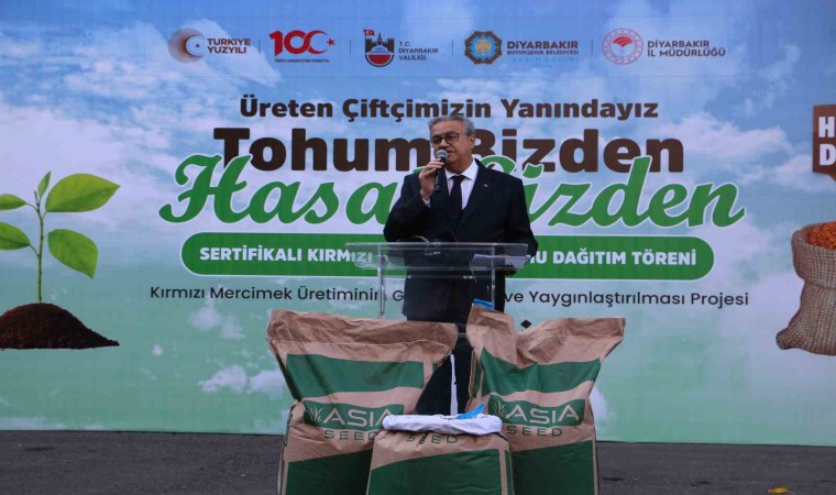 Büyükşehir Belediyesi bahçesindeki dağıtım töreninde konuşan Vali ve Büyükşehir Belediyesi Başkan Vekili Ali İhsan Su; bakanlığın 6, Diyarbakır Büyükşehir Belediyesi’nin 4, çiftçilerin ise 3 milyon liralık desteğiyle toplam 13 milyon liralık sertifikalı kırmızı mercimek tohumu dağıtıldığını belirtti.
