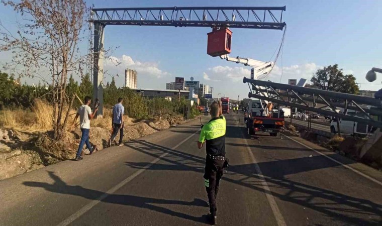 Diyarbakır’ın Bismil ilçesinde damperi açık bir şekilde seyreden hafriyat kamyonu KGYS kameralarının takılı olduğu direği devirdi.