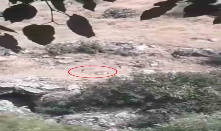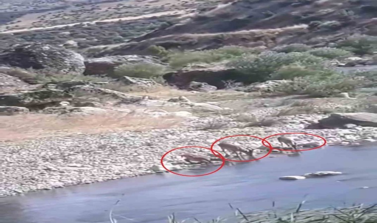 Bu sırada bölgede bulunan bir vatandaş, susayıp dağdan inerek dereden su içen keçileri cep telefonu kamerasıyla görüntüledi.