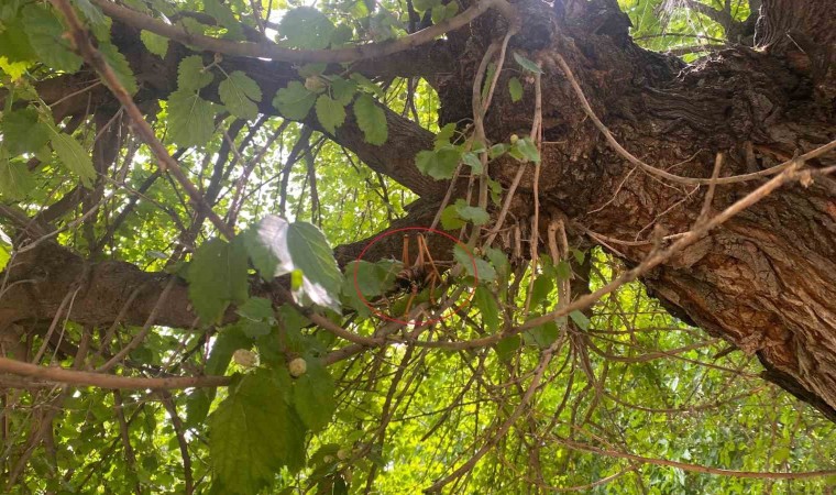 Diyarbakır’ın Kulp ilçesinde dut ağacında dev etçil çekirge görüntülendi.