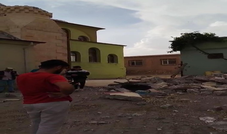 Diyarbakır’ın Hazro ilçesinde fırtına sırasında yıkılan caminin minaresi bir evin üstüne devrildi.