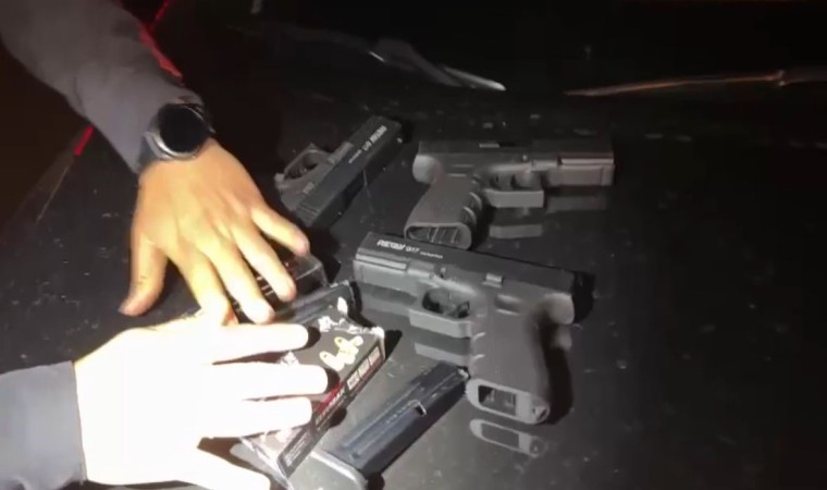 Polis, operasyonda yakaladığı şüphelilerin sahte kimlikle araç kiraladığını tespit edip, 3 ayrı aracı konum bilgisinden yakaladı. Cumhuriyet Savcılığı’ndan alınan izinlerle yapılan aramalarda 5 ruhsatsız tabanca ve 2 pompalı tüfek ele geçirildi.