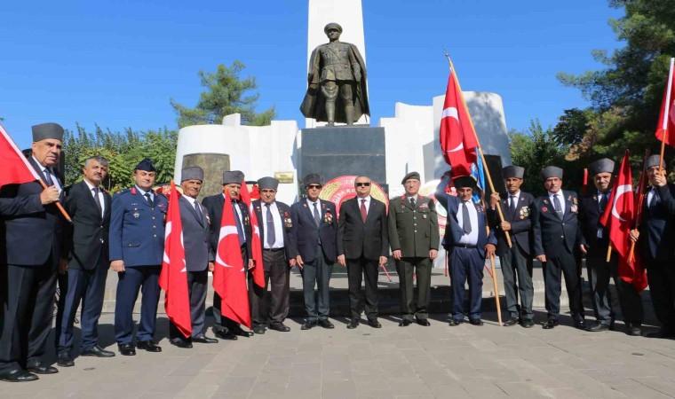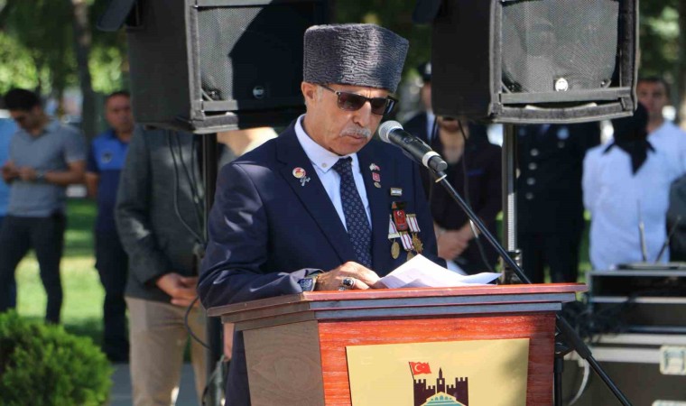 Atatürk Anıtı’na çelenk konulmasıyla başlayan törende saygı duruşunda bulunulup, İstiklal Marşı okundu. Günün anlam ve önemini belirten şiirlerin okunmasının ardından Kıbrıs gazisi Siraç Ezer, “Su uyur düşman uyumaz. Bütün bunlara karşı Türk milletinin hürriyet ve bağımsızlığı söz konusu olunca daha sık kenetlenmesini bilmiş” dedi.