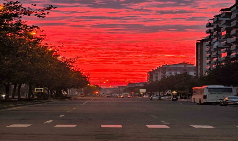 Diyarbakır’da sabahın ilk saatlerinde gökyüzü kızıla büründü.
