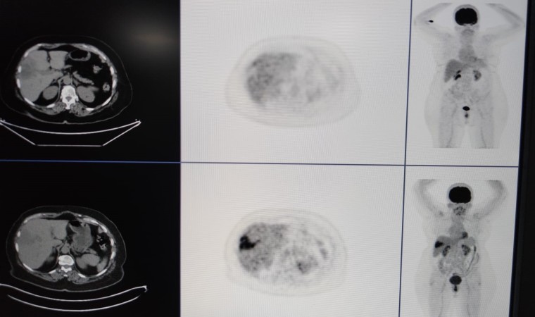 Nükleer tıp birimi ile işbirliği içerisinde hastalara tedavi uyguladıklarını ifade eden Şenol, “Bu servisimizde diğer birimlerle işbirliği yaparak çalışıyoruz. Nükleer tıp en fazla işbirliği yaptığımız birimdir. Hastaların çoğu buraya gelmeden nükleer tıp birimine görünüp öyle bize gelir. Hastanın uygunluğu araştırıldıktan sonra öncesinde burada tedavinin bir provası yapılır. Kitlenin besleyici damarı bulunup buraya bir prova olarak asıl vereceğimiz ilaca benzer bir ilaçla enjeksiyon yapılıyor. Daha sora nükleer tıp biriminde ilacın o kitleyi ne kadar tuttuğu hesaplanıp uygun dozlarda asıl ilaç dozu hesaplanır. Bir sonraki seansta aynı şekilde daha önce belirlediğimiz damarın içine girip radyoembolizan dediğimiz küçük parçacıklara radyoaktif maddeler yüklüyoruz. Biz bu parçacıkları küçük küçük doku içerisine gönderip hem belli bir süre tıkama hem de lokal olarak vücudun diğer taraflarına etki etmeden sadece kitleye etki edip onu öldürme yöntemini kullanarak tümörü tedavi ediyoruz” diye konuştu.