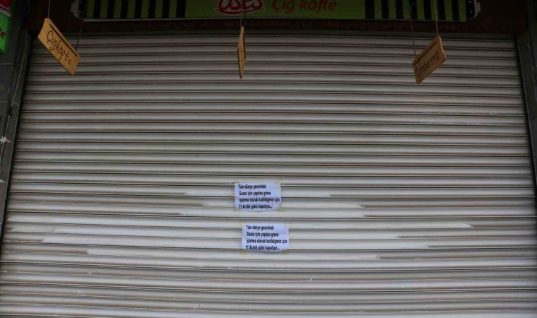 İsrail’in abluka altındaki Gazze Şeridindeki saldırılarını durdurmak için tüm dünyada küresel grev başladığı gibi Diyarbakır’da da esnaf kepenk kapattı.