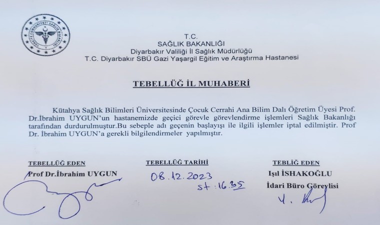 Ortada çok büyük bir yanlışlık olmadığını aktaran Dr. Uygun, “Sadece bir memurun yazışma hatasından kaynaklanan bir durum. Bununla ilgili özelikle Sağlık Bakanlığımıza buradan sesleniyorum. Bu konuyla ilgili ivedilikle bir düzeltme yapılmasını kendisinden rica ediyoruz. Kadın Doğum Hastanesinde bir haftadır çalışıyorum. Bir hafta boyunca bütün planlarımızı imkanlarımızı zorlayarak yaptık. Yarın itibariyle bu hastalarımızın yemek borusunu genişletme ameliyatlarına başlayacaktık. Doktor arkadaşlarla beraber böyle bir çalışma planı yapmıştık. Maalesef şu anda hepsini erteleme zorunda kaldık” diye konuştu.