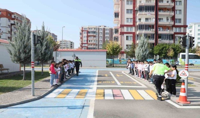 Diyarbakır’da ilkokul öğrencilerine trafik konusundaki farkındalığın geliştirilmesi amacıyla uygulamalı trafik eğitim verildi.