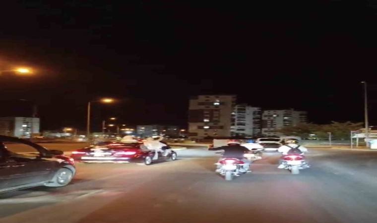 Davetlilerin de şaşkınlıkla izlediği düğün motorlu konvoyla son bulurken, o anlar cep telefonu kameralarına yansıdı.