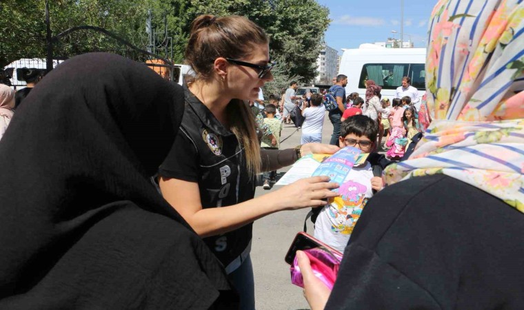 Diyarbakır’da 2023-2024 eğitim öğretim yılının başlamasıyla polis ekipleri uyuşturucu kullanımının zararlarıyla ilgili bilinçlendirme yapmak amacıyla okul bahçesinde öğrencilere ve velilere broşür dağıttı.