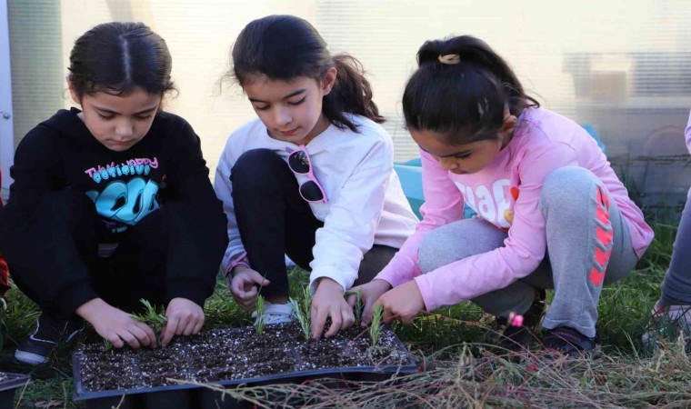 BİLSEM bahçesinde oluşturulan seraya götürülen çiçeklere öğrenciler tarafından can suyu verildi. Çalılar ve kışlık mevsimlik çiçekler gelişimlerini tamamladıklarında toprakla buluşturulacak.