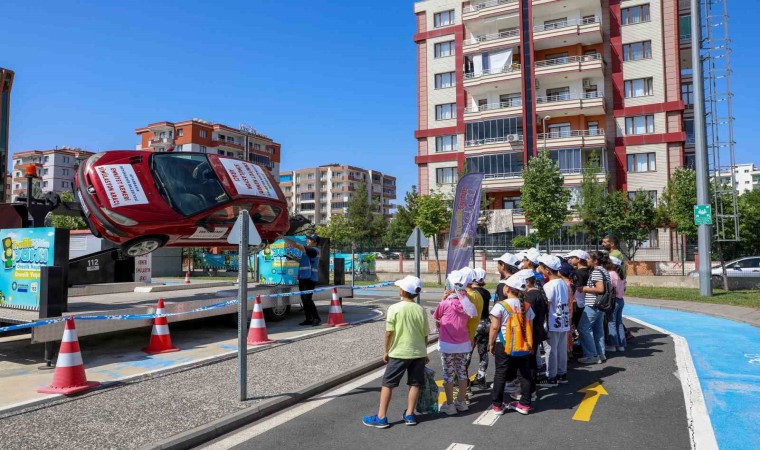 Ayrıca parka yerleştirilen simülasyon araçla çocuklara, trafik kazalarının nasıl olduğu ve emniyet kemerlerinin insan hayatını kurtarmadaki rolü de anlatıldı.