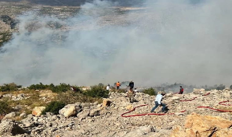 Burak EMEK/DİYARBAKIR, (DHA)- DİYARBAKIR'ın Hani ilçesi kırsalında çıkan orman yangınına havadan ve karadan müdahale ediliyor.