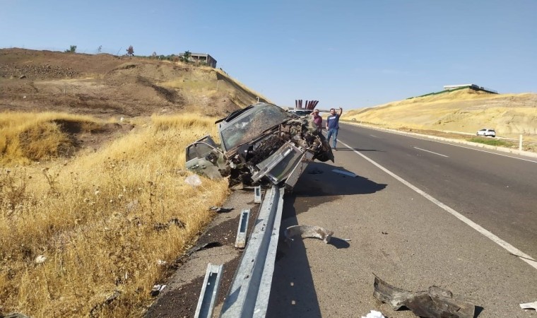Diyarbakır-Mardin kara yolunda bariyerlere çıkan otomobilin sürücüsü yaralandı.