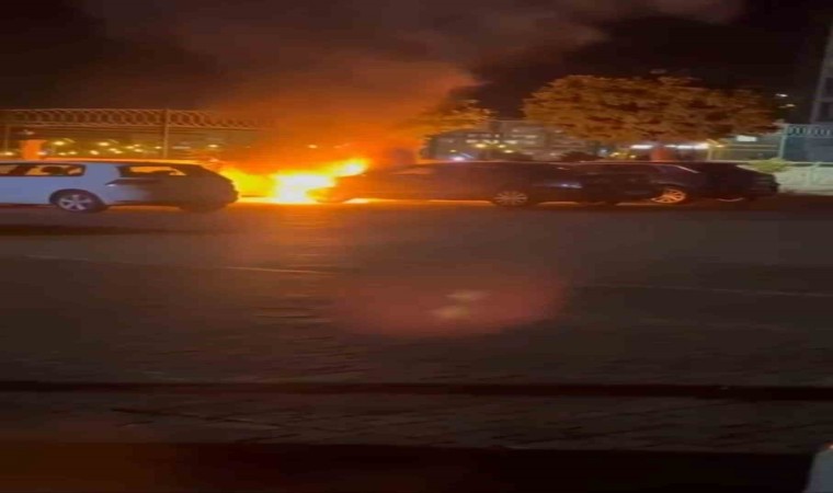 Diyarbakır’da bir sitenin içerisinde park halindeki lüks otomobil, henüz belirlenemeyen nedenle alevlere teslim oldu.